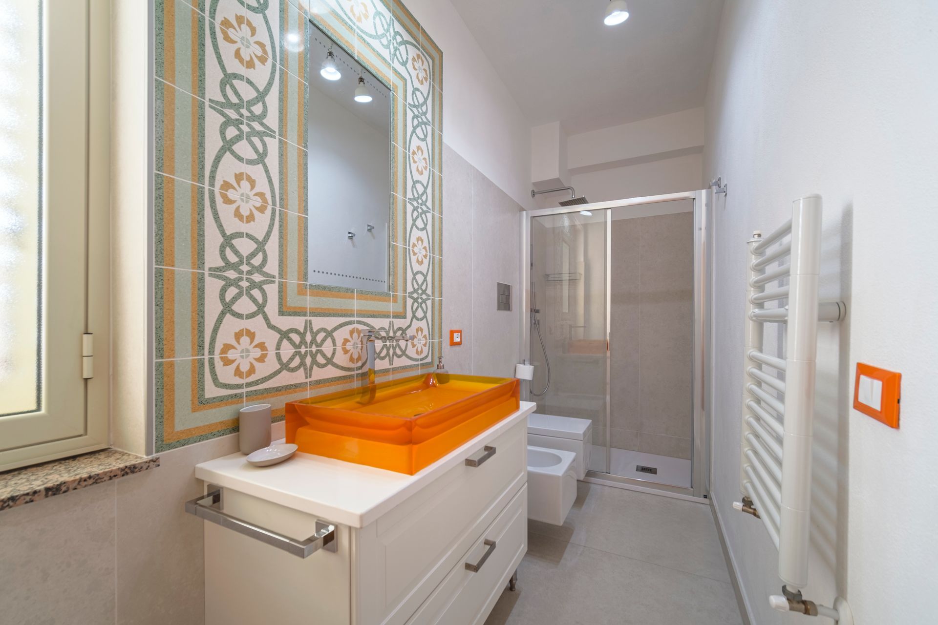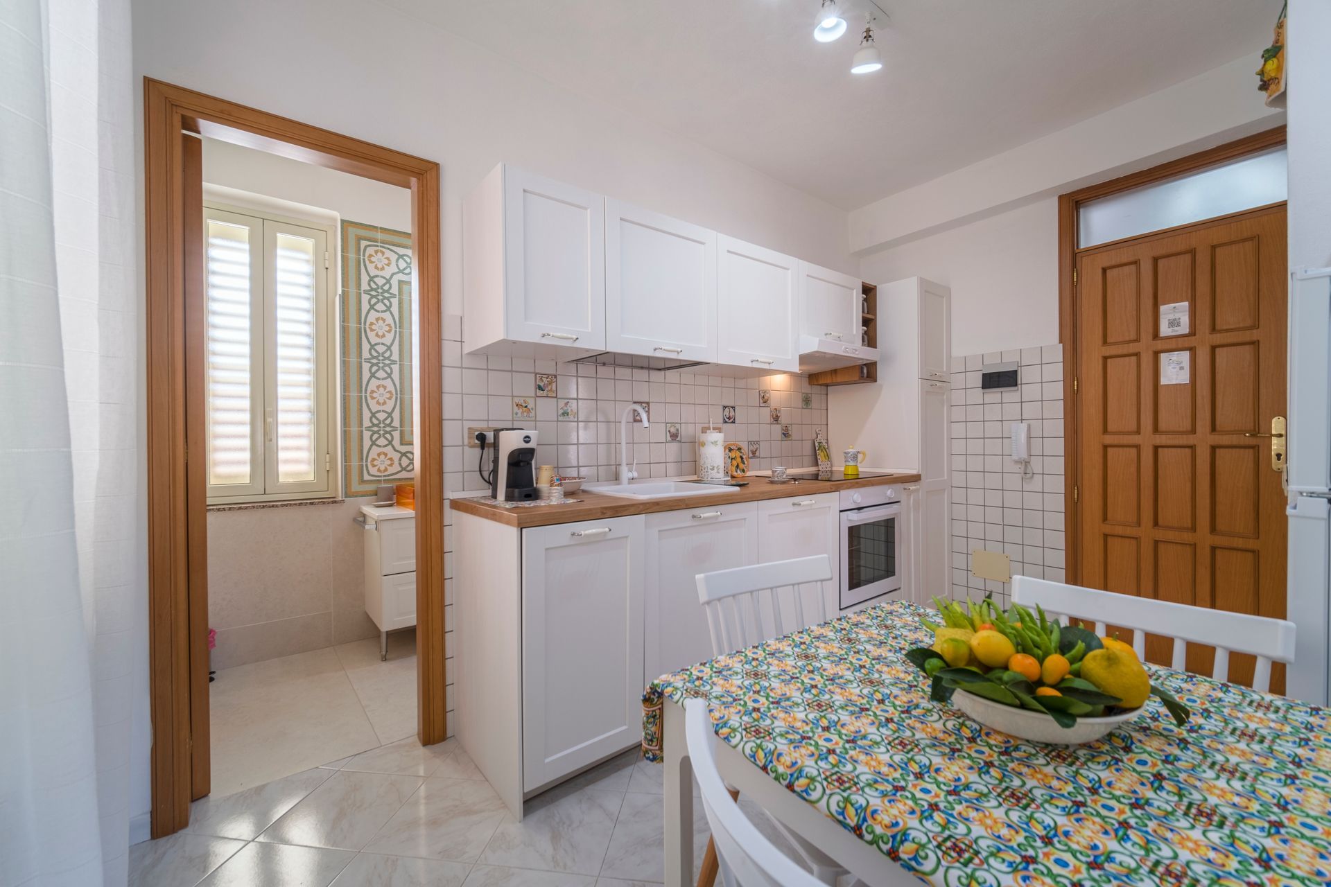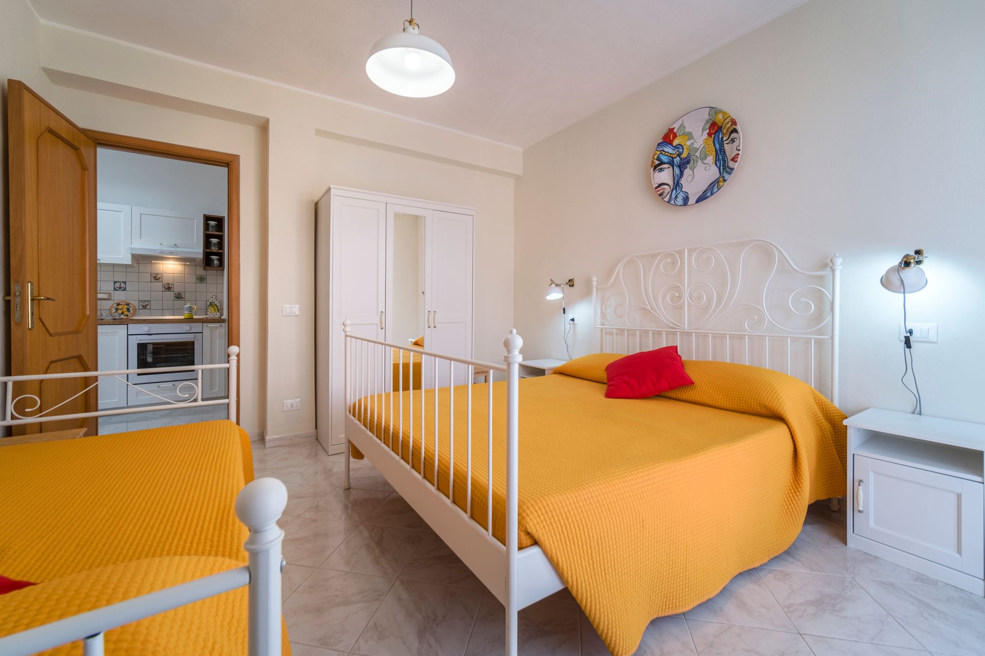 L’ appartamento è molto luminoso e si ispira all’anima più profonda della terra di Sicilia, richiamando nei decori e negli arredi la natura dei rigogliosi agrumeti.